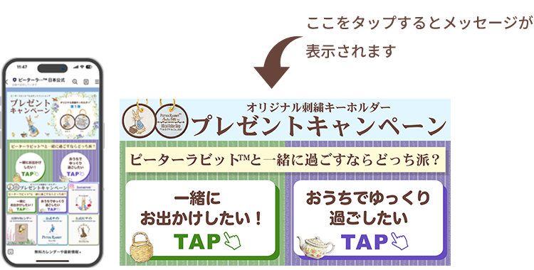 - ① ピーターラビット™公式LINEをお友だち登録をしてください。